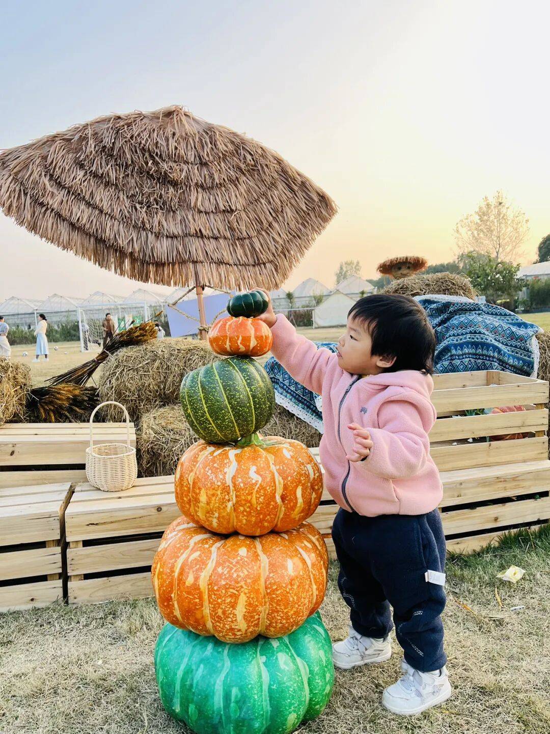 事情是这样的、昨天(周六下午)我和丈夫带着小女儿去对面的郊野公园户外。我们来到一个农场的营地,里面有滑滑梯、秋千、沙坑、简易蹦床,帐篷等适合团建,遛娃等设施,配上秋收的稻草人,南瓜等装饰物件,充满童趣又自然的氛围。