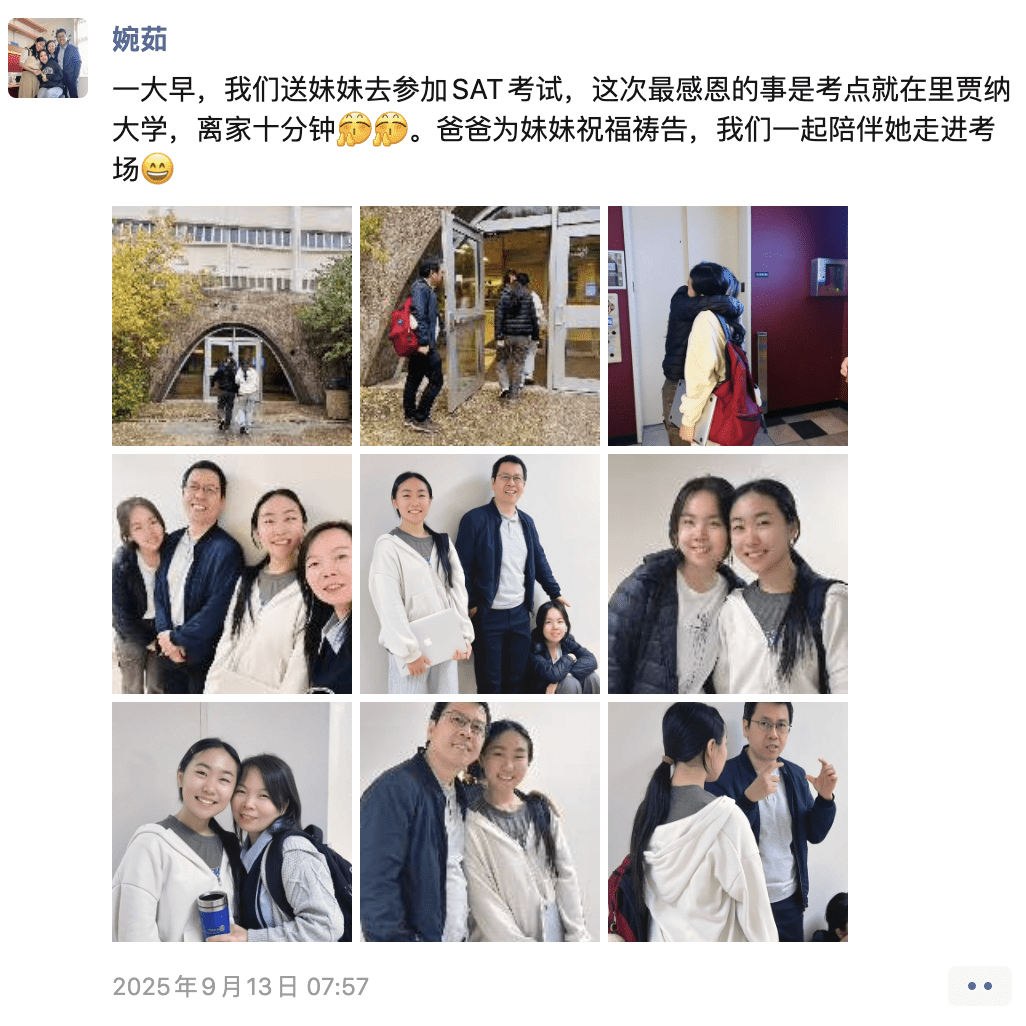 十年级下半学年,妹妹一有时间就开始备考SAT,模考成绩从 1100 提升到 1580,进步是清晰而喜人的。正式考试当天,妹妹遇到了考场噪音、心情紧张、算错时间等意外情况,最后,这第一次正式考试只考了 1400 分,但她并没有因此否定自己,只是明白,考出好成绩仍需要时间去打好扎实的基础,于是又报名了明年暑假的SAT考试。