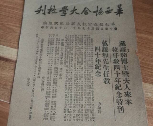 1948年11月10日,时值戴谦和来华四十周年,师生们举办庆祝会,方叔轩校长在《戴谦和先生任教四十年纪念》一文中赞道:“戴先生与夫人均系热诚之基督信徒,平生主要时间与精力,既全为中国服务,造就人才,数以千计今者两人白发皤然,犹复工作不懈,膝下虽无子女,其所作育之中国青年,闻风继起,可以承续其事功,亦当不负毕生之志愿矣”。这可谓是对戴谦和一生功绩的最好诠释。