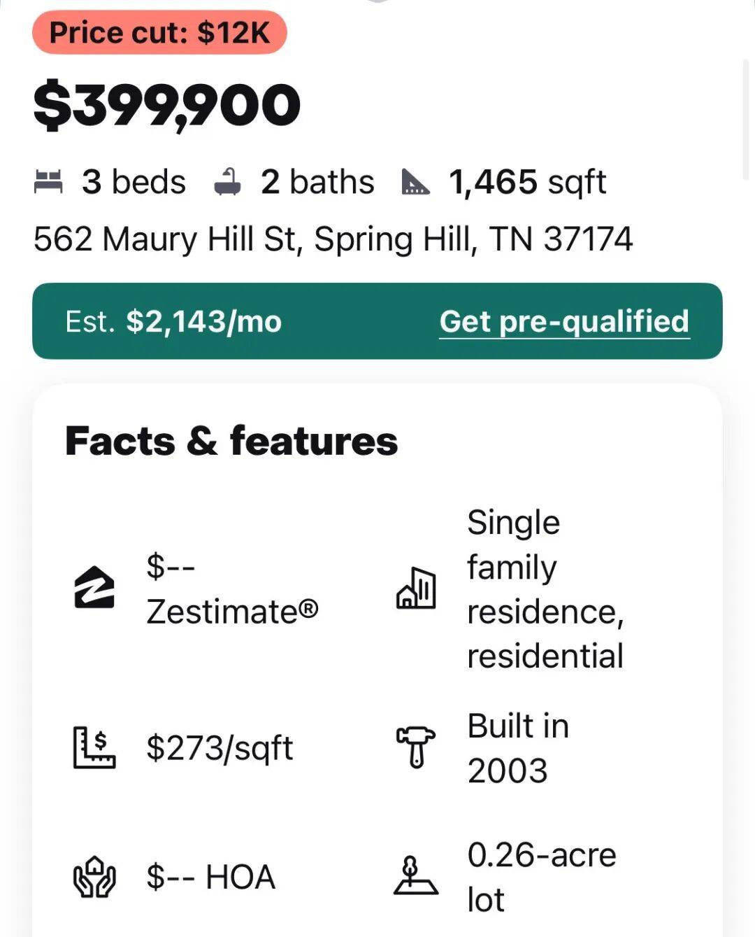 这个地方距离纳什维尔开车大概40分钟,是GM的电池与整车制造基地。GM是美国三大汽车制造商之一(和福特,Chrysler并列),提供了大量的工作机会。这里的房价就更友好一些了。