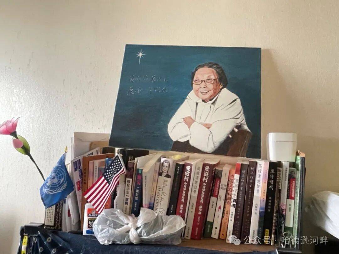 去DC之前,我特意在新泽西的家中打印出了五张有代表性的高奶奶的照片。第一张是高奶奶被绣球花环绕的照片,因为她生前很喜欢花;第二张是高奶奶和艾滋孤儿在一起的照片,因为她生前最牵挂艾滋孤儿;第三张是高奶奶去世前一天(12月9日)的照片,这是她留给世界最后的模样;第四张是高奶奶2018年手写的“但愿人皆健,何妨我独贫”,这幅对联曾经悬挂在高奶奶郑州房子的墙上,如今刻在中央公园她的纪念长椅上;最后一张是2023年12月18日高奶奶追思会的照片。