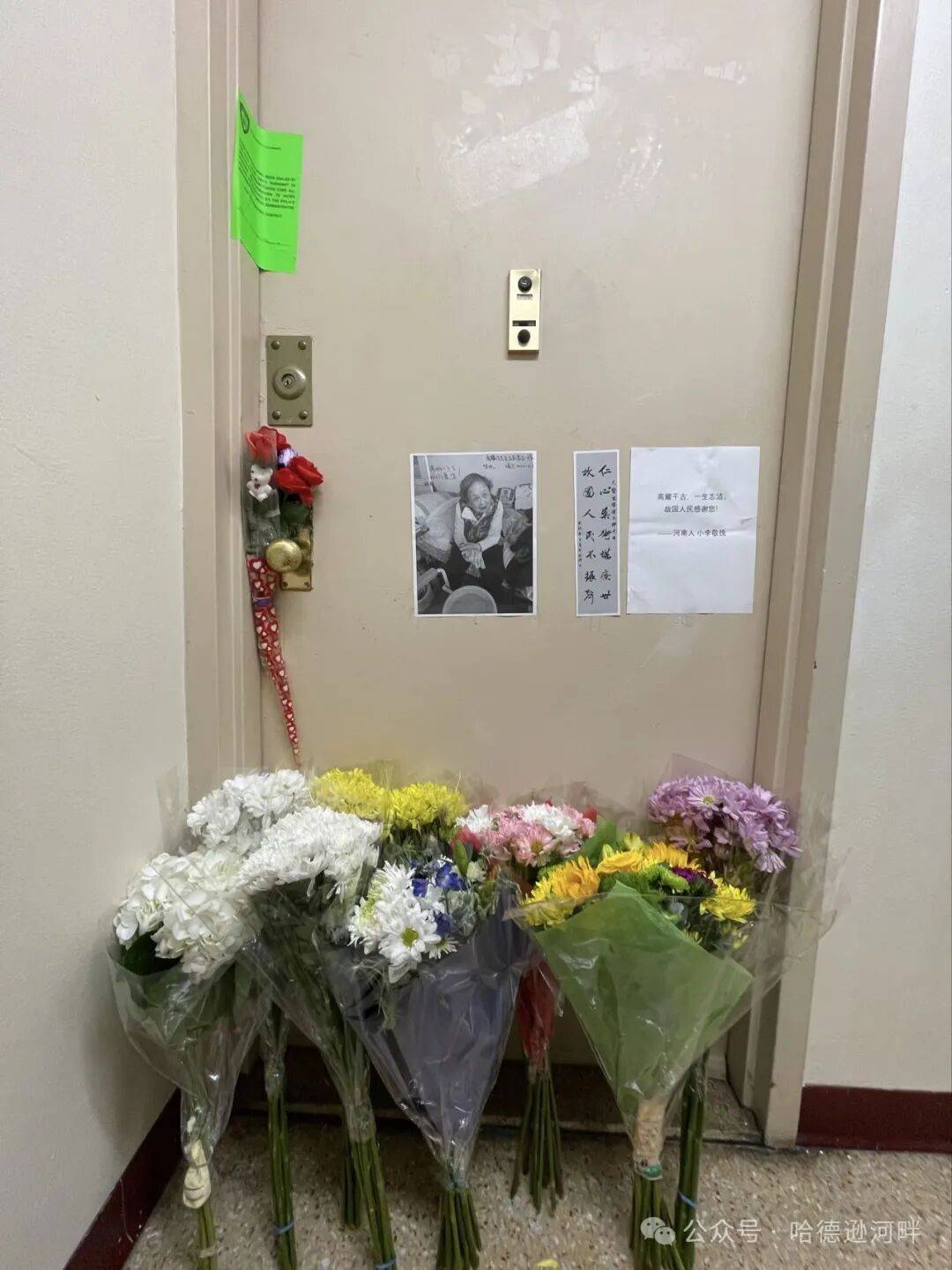 高奶奶去世那天,虽然黎安友教授告诉我,警察已经封锁了现场,我过去也进不了门。但是我还是想去看看。次日,我和先生及一枚买了好几束花,带上各路朋友让我们转达哀思的卡片,摆在高奶奶的门口悼念她。