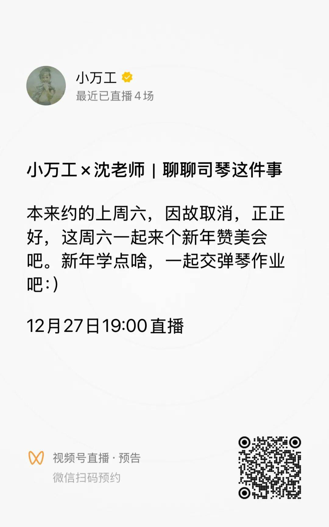 这周六的连线沈老师,想学琴的朋友不要错过,有优惠哦