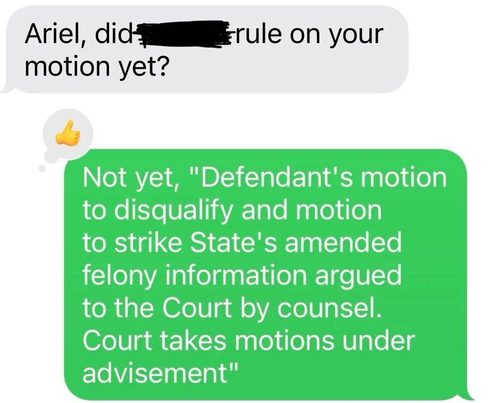 昨天我有一个听证会,辩论完以后,检察官自闭了好一会,同事觉得很好笑,今天还给我发了消息。