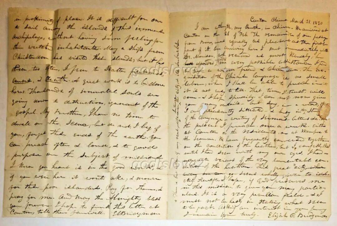 1830年1月22日,裨治文一行抵达澳门。2月26日,抵达广州。到达后,立即见到了马礼逊博士,马礼逊非常热情地接待并提供一切可能帮助他们学习汉语。