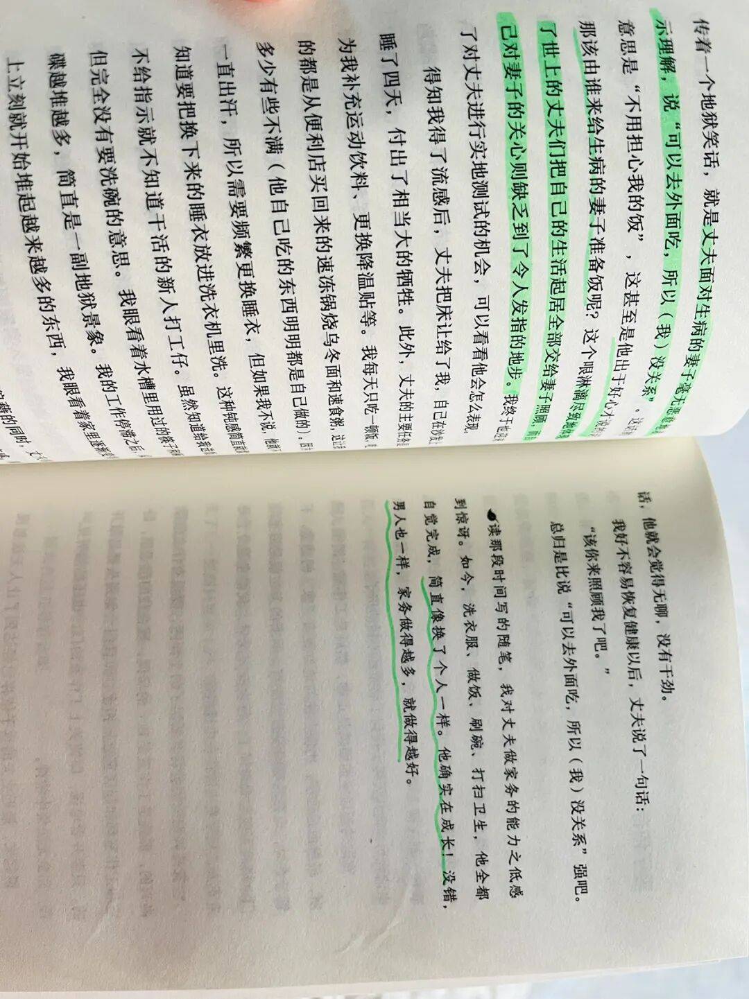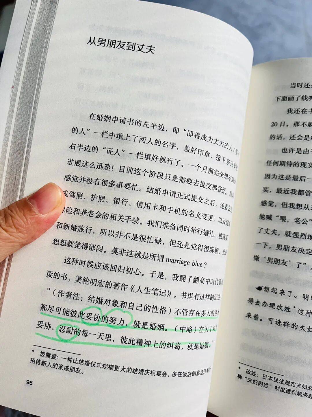 这本书令我感到惊喜的是,她不是单主题地表达女性“应有”的权利,而是插入了男方的观点以及多年后自己的阅后感受,在边记录边反思,让人看到婚姻艰难的另一面也是生命的充实和成长。