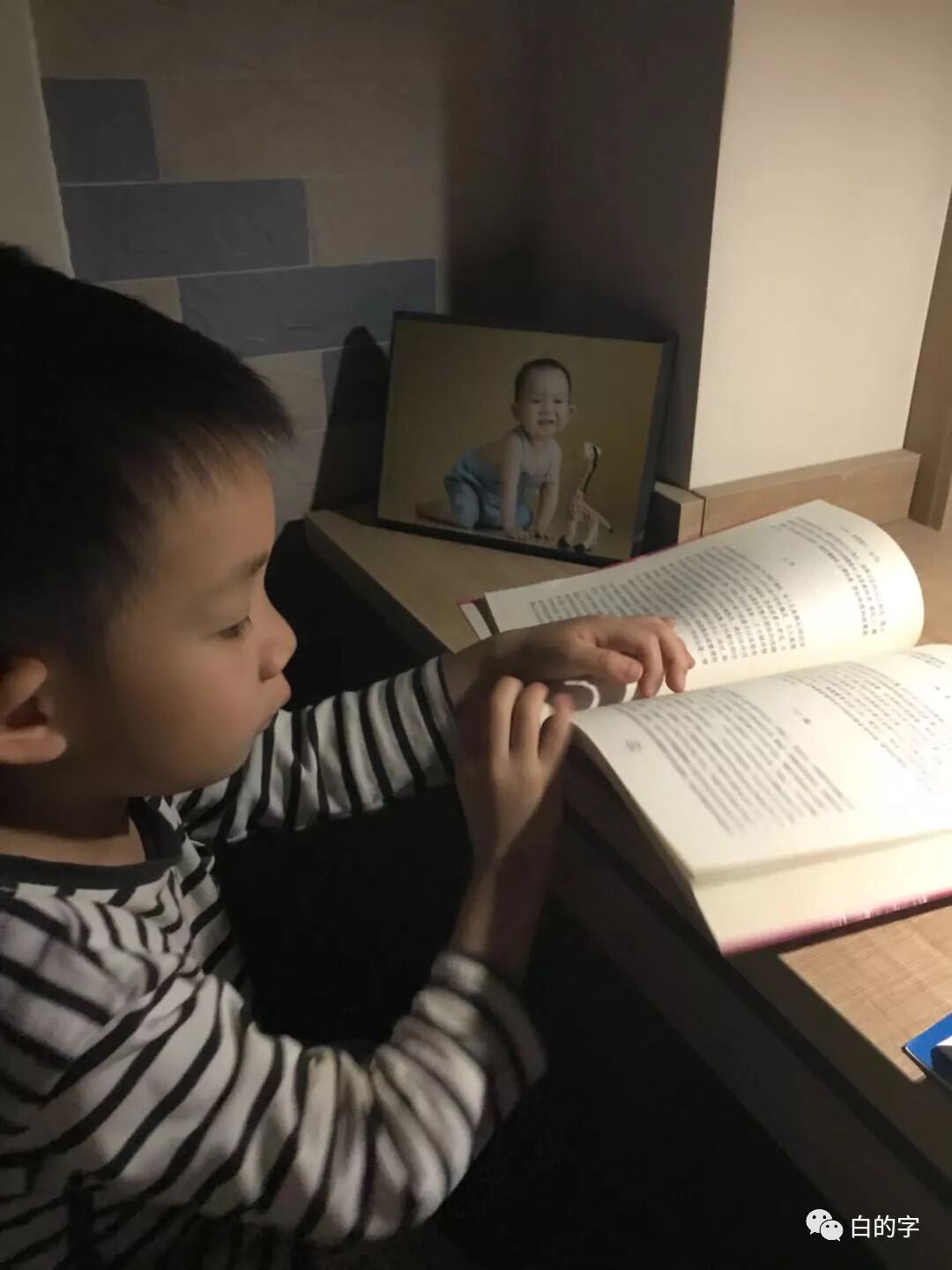 摩西最近晚上开始粘着爸爸了,坚持要和爸爸一起看书,要等爸爸熄灯了才肯休息。