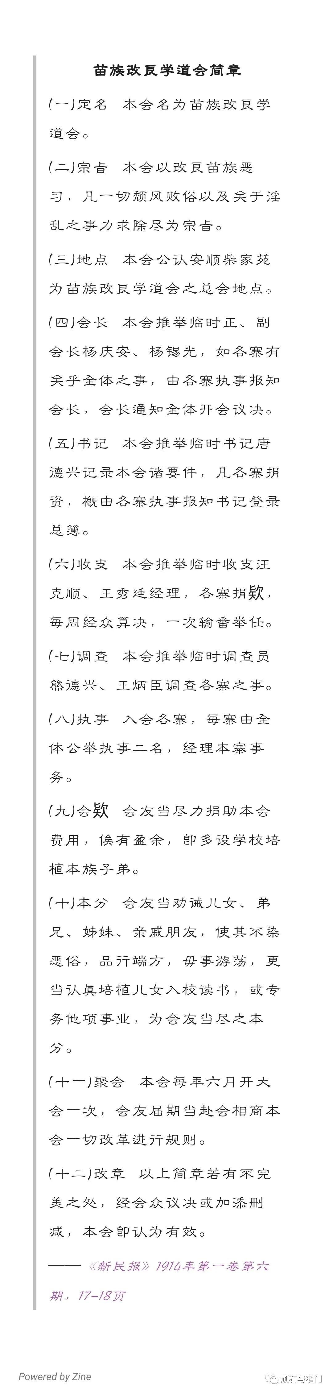 關於苗族改良會的歷史,透過這“苗族改良學道會簡章”,您可以窺探到一些更為詳細的歷史。